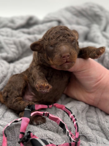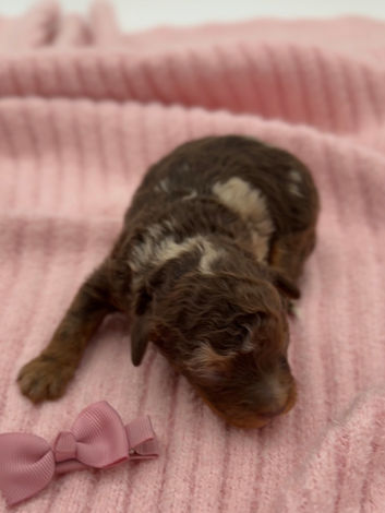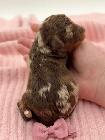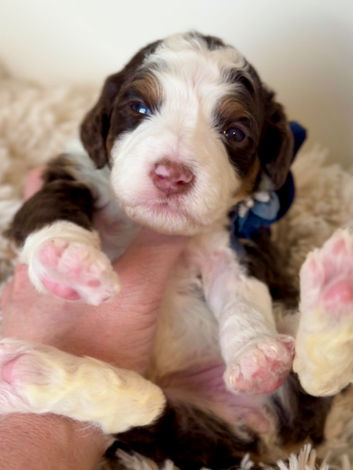 Celia is a stunning Chocolate Tri Color Bernedoodle. She weighs 35 pounds and is genetic tested.