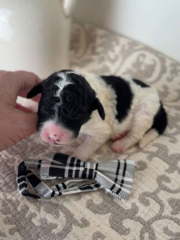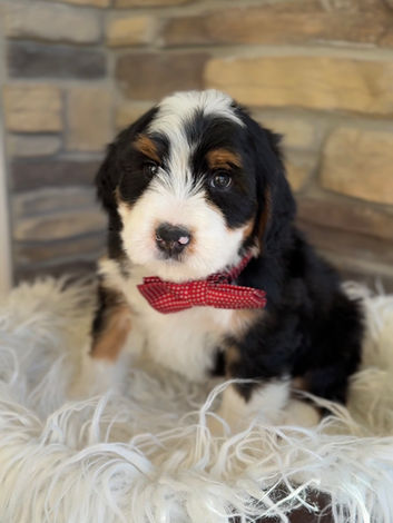 Cowboy is a multigenerational Bernedoodle. He weighs 28 pounds and is genetic tested.